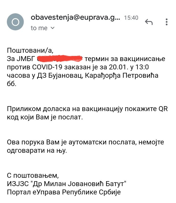 Bujanovac, 19. januar 2021. Vakcinacija građana protiv korona virusa u Bujanovcu počinje sutra. Vakcinu bi trebalo da primi 56 ljudi koji su se prijavili elektronskim putem na sajtu euprave.