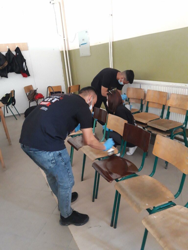 Bujanovac, 6. mart 2021.- Učenici srednje škole „Sezai Suroi“ iz Bujanovca sada će se hraniti u mnogo prijatnijem ambijentu, pošto su juče, zajedno sa svojim drugarima iz „Svetog Save“ sređivali kantinu u svojoj školi. Petnaestak mladih oslikalo je zid u ovoj prostoriji, ofarbalo stolice i montiralo stolove na kojima će moći ubuduće jesti.