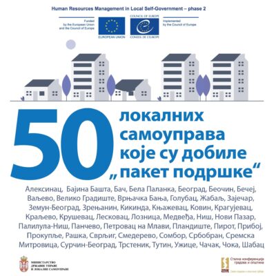 U Programu “Upravljanje ljudskim resursima u lokalnoj samoupravi – faza 2”,vrednom 4 miliona evra, učestvuje 50 lokalnih samouprava i zajednički ga finansiraju Evropska unija i Savet Evrope, koji i sprovodi Program u saradnji sa Ministarstvom državne uprave i lokalne samouprave i Stalnom konferencijom gradova i opština