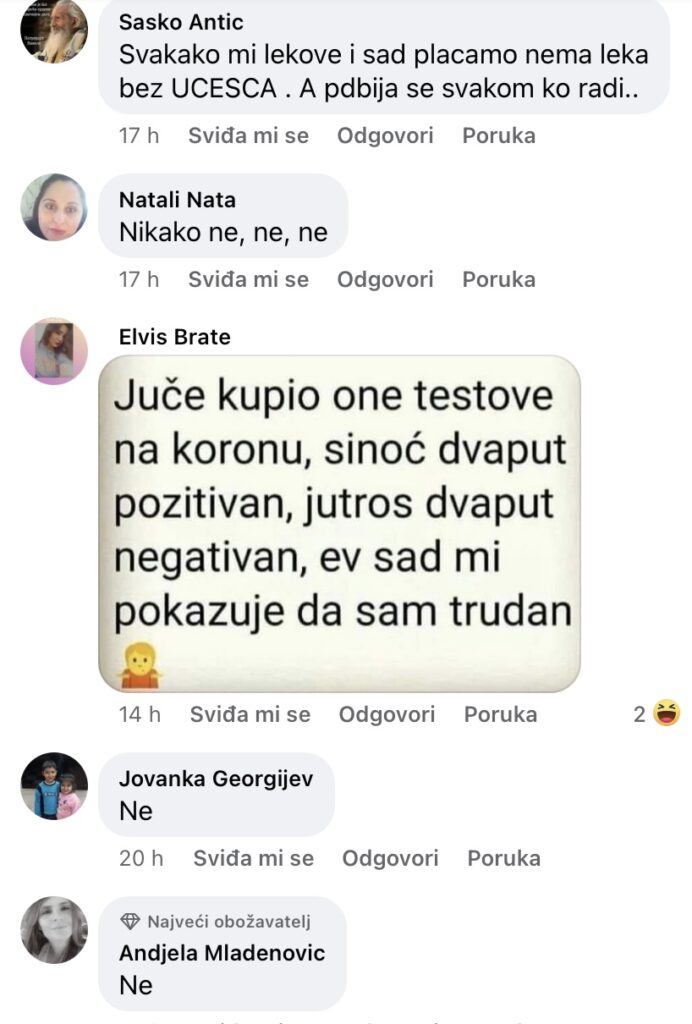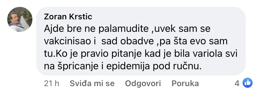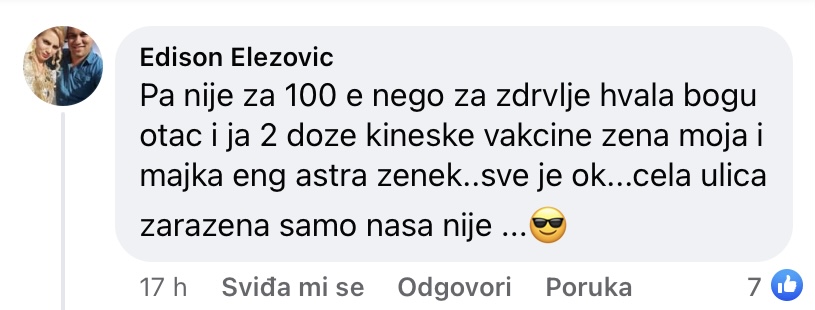 -Pa nije za 100 evra, nego za zdrvlje. Hvala bogu, otac i japrimili 2 doze kineske vakcine, moja žena i majka engleskuastra zeneku i sve ok, cela ulica zarazena samo nasa kuća nije – glasi jedan od komentara.