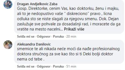 “Izuzetan doktor koji ne gleda na nacionalnost. Uvek tu da pomogne pacijentima. Vratite ga gde mu je mesto, jer to zaslužuje, bez ikakve dileme” – poručuje Saša Demirović.