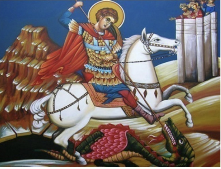 Pod pobedom koju je Sveti Georgije odneo nad aždajom verovatno se misli na zaustavljanje progona hrišćana koji je sprovodio car Konstantin.