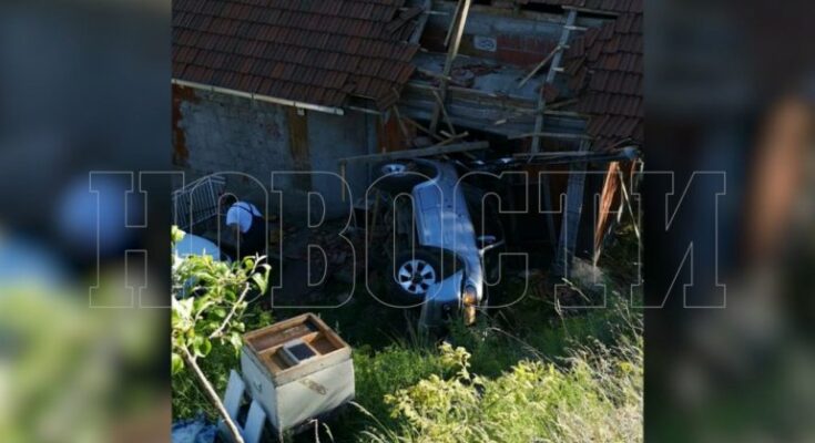 Bujanovac, 10. maj 2021. (foto Novosti) – U saobraćajnoj nesreći u selu Starac u opštini Bujanovac sa puta je sleteo džip, uleteo u krov kuće, a zatim se prevrnuo.