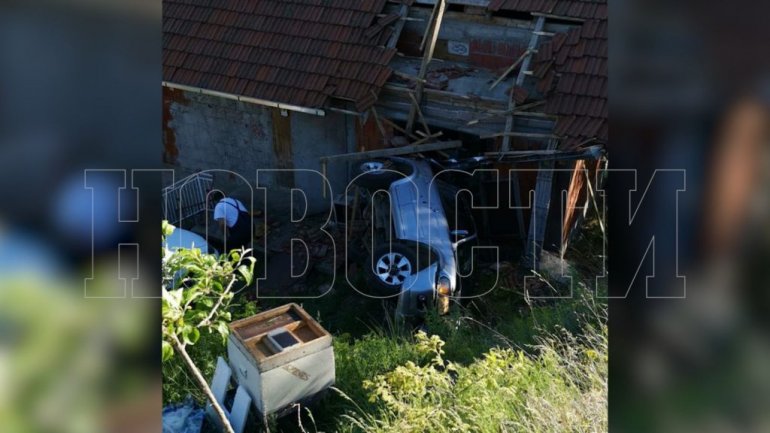 Od siline udarca “micubiši” je sleteo sa puta, zatim udario u krov stare kuće i preokrenuo se.