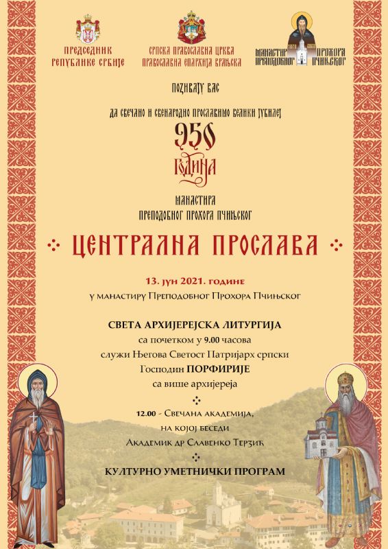 Kako su ranije objavile Bujanovačke, Eparhija vranjska je uputila poziv svim vernicima na proslavu jubileja manastira Prepodobnog Prohora Pčinjskog.