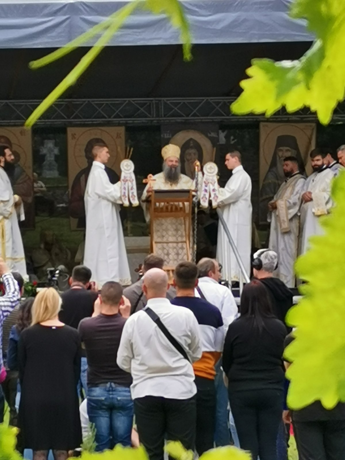 Njegovu besedu čulo je više stotina vernika koji su se okupili u porti manastira.