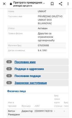 Firma „Unikat d.o.o.“, čiji je direktor Veton Ramadani, brat predsednika Skupštine Envera Ramadanija, dobila je 2,87 miliona dinara, a „Giga Trends“ u vlasništvu Sameta Arifija, po saznanjima Bujanovačkih bratanca predsednika opštine, iz budžeta KT dobija 1,06 miliona dinara.