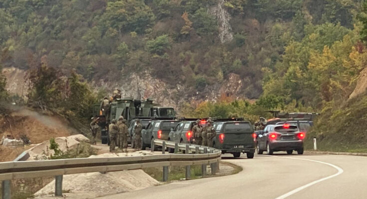 Bujanovac, Sever Kosova, 2. oktobar 2021. (Foto Kosovo online)- Pripadnici KFOR-a u subotu ujutru pristižu na prelaze Jarinje i Brnjak, a pripadnici kosovske policije i Srbi, koji od 20. septembra blokiraju ove prelaze, pakuju se i spremaju za odlazak, javlja portal Kosovo online sa lica mesta.