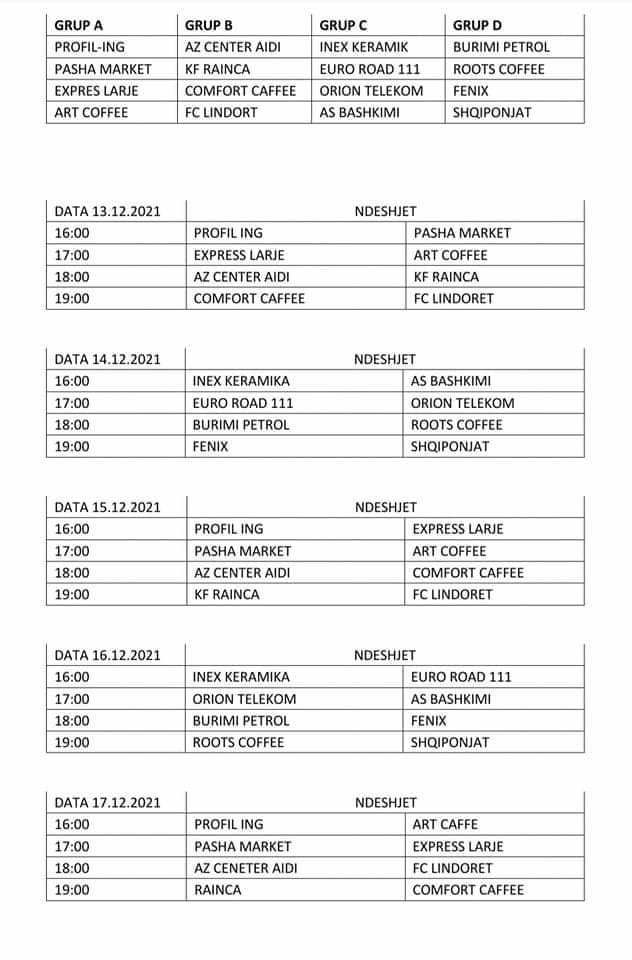 Prijavilo se 16 ekipa podeljenih u 4 grupe a finale je zakazano za 23. decembar.