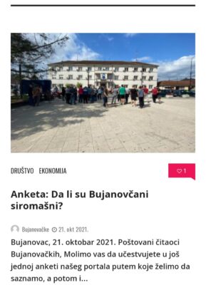Bujanovac, 28. februar 2022. – Posredstvom portala Bujanovačke građani Bujanovca su prethodnih osam meseci ukazivali na probleme sa kojima se suočavaju na teritoriji opštine, u okviru projekta “Media for all” koji naš portal sprovodi uz podršku organizacije British council.