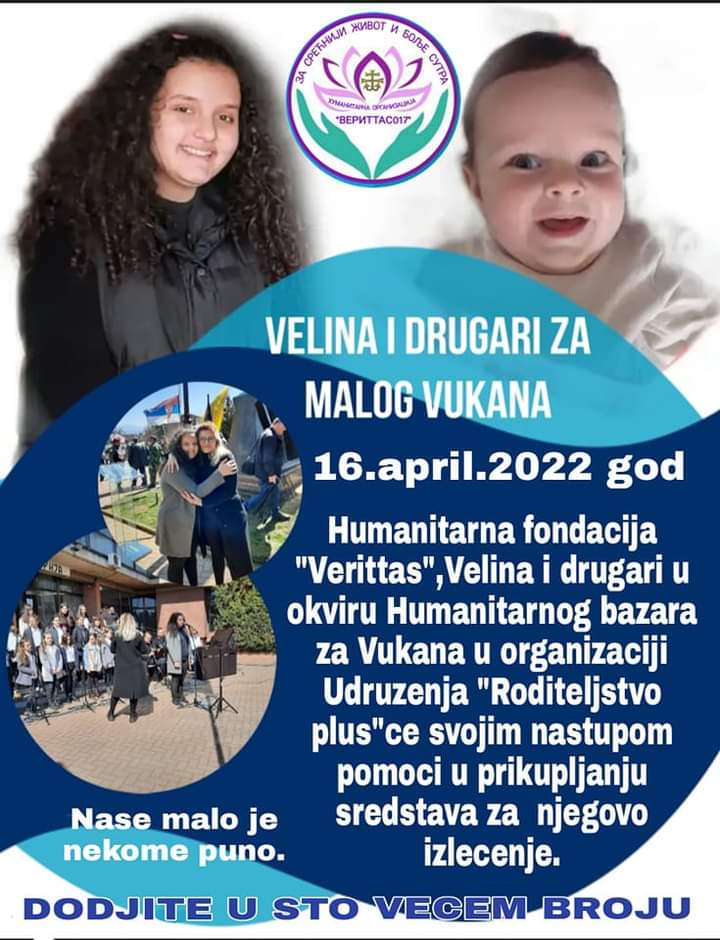 Bujanovac, 29. mart 2022. – Humanitarna organizacija “Verittas 017” iz Vranja organizuje humanitarno hodočašće u manastir Tumane 17. aprila i zajedno sa Udruženjem “Roditeljstvo plus” Humanitarni bazar, koji će 16. aprila biti održan na šetalištu ispred robne kuće u centru Vranja, sve kako bi se prikupila sredstava za lečenje malog Vranjanca Vukana Stoiljkovića.