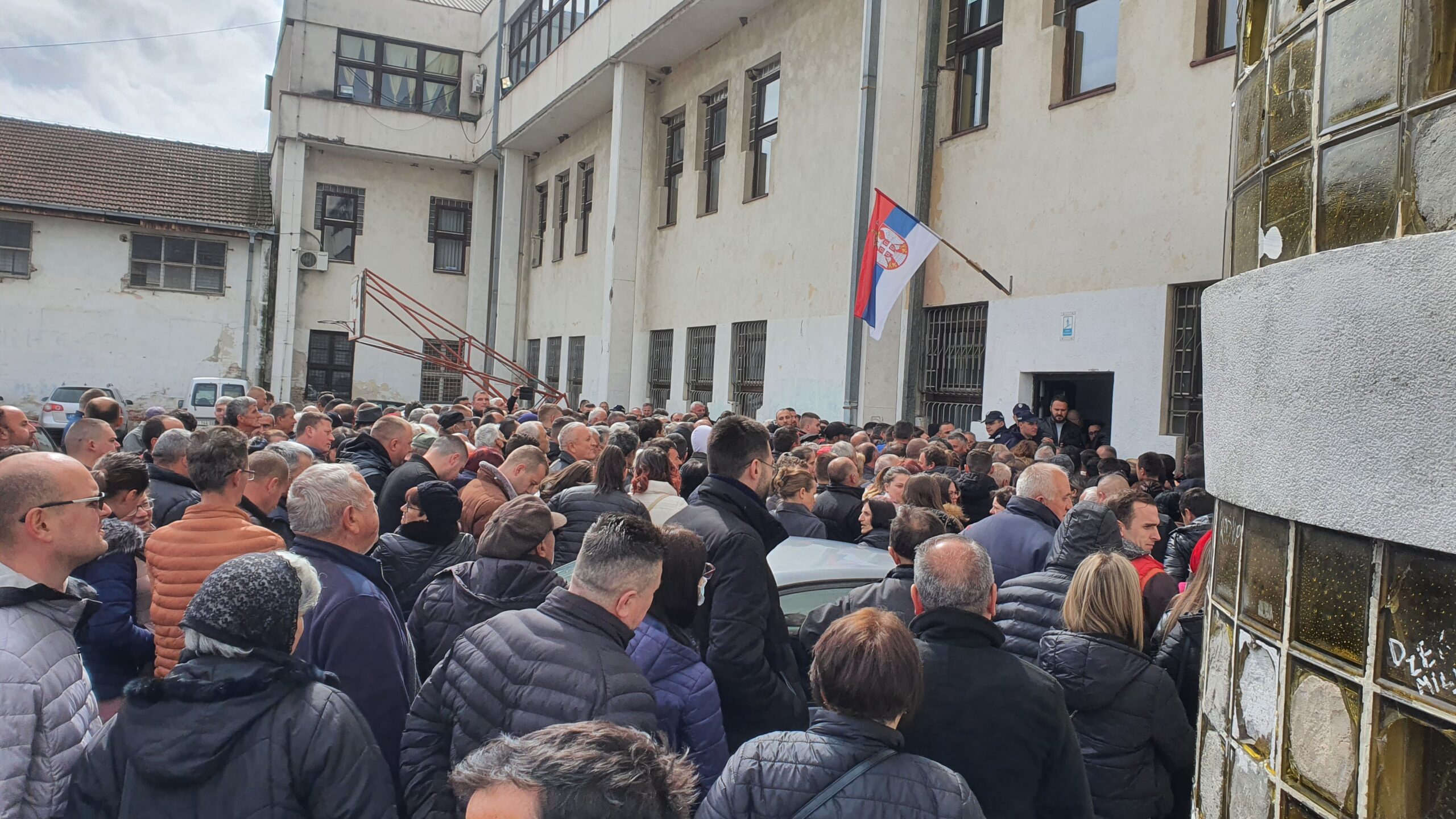 U dvorištu škole je velika gužva, a red zavodi policija. Prema nezvaničnim informacijama, do 11 časova je u Bujanovac stiglo više od 2.000 ljudi