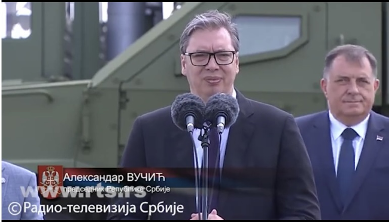 Bujanovac, 30. april 2022. (Foto snimak ekrana RTS)- Predsednik Srbije Aleksandar Vučić rekao je posle prikaza vežbe “Štit 2022″ da u vezi sa Kosovom i Metohijom nemamo šta dobro da očekujemo i napomenuo da se sada praktično dijalog sa Kurtijem i ne vodi.