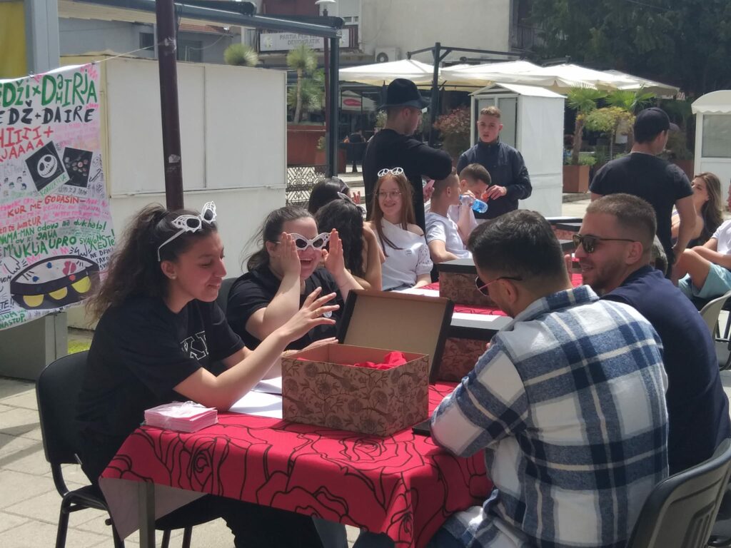 Bujanovac, 9. maj 2022. – Srbi, Albanci i Romi iz bujanovačkih škola “Sveti Sava” i “Sezai Suroi” zajedno su istraživali lokalno kulturno nasleđe i u nedelju (8. maj) na gradskom trgu u Bujanovcu izveli svojevrsni performans, odnosno igrokaz za građane pod nazivom “Kolekcija imanja i nemanja”, kojom su na zabavan način predstavili lokalne kolekcionare.