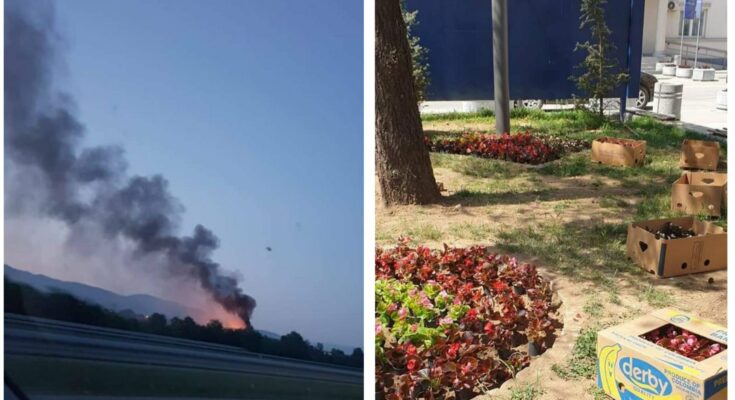 Bujanovac, 16. maj 2022. Dok deponija kod Bujanovca gori osmi dan i grad i okolina se suočavaju sa ekološkom katastrofom iz JP „Komunalac saopštavaju da nastavljaju da sade cveće.