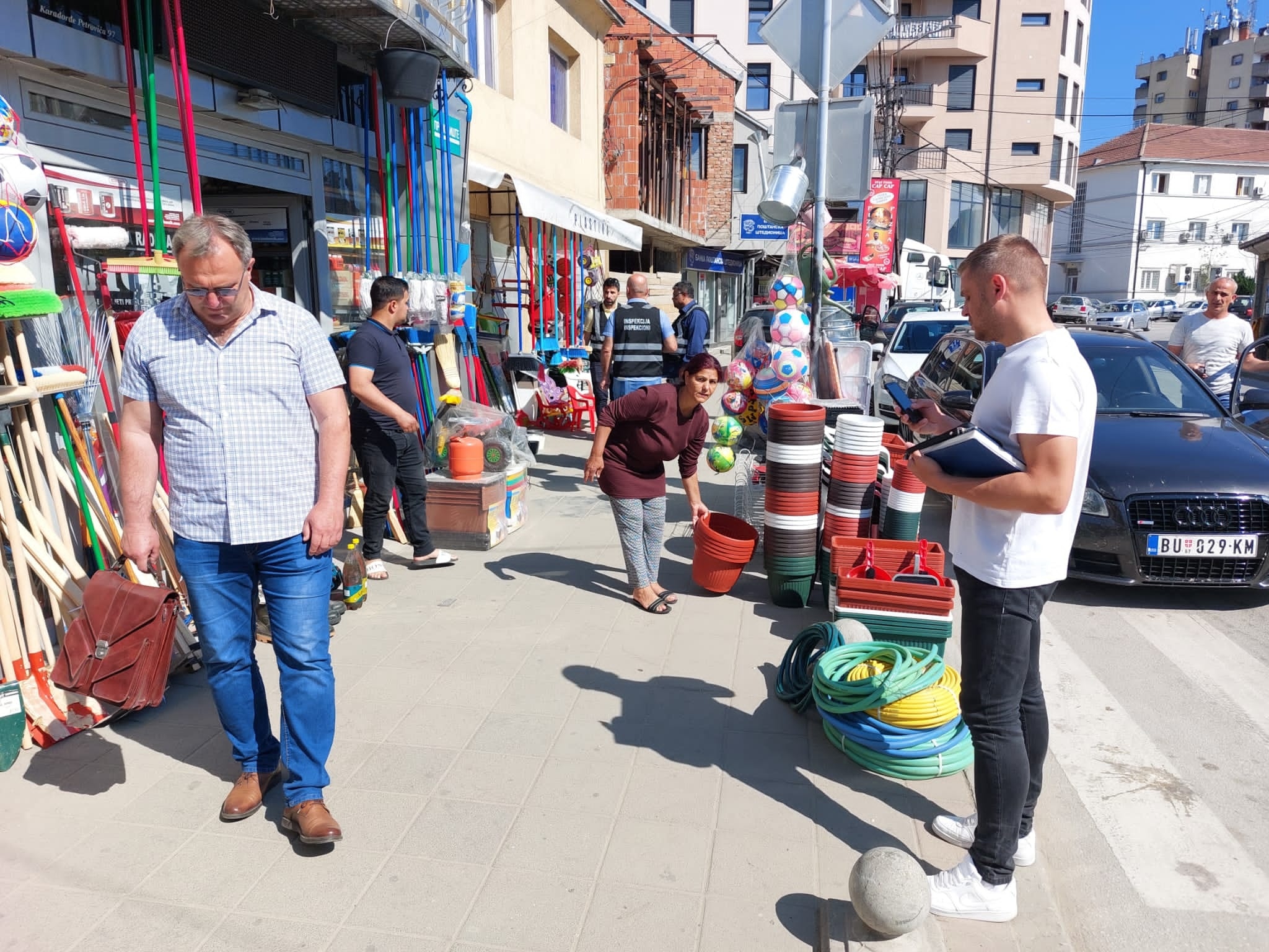 Bujanovac, 17. maj 2022. (foto FB Opština) – Svi koji su neovlašćeno zauzeli javne površine danas će se suočiti sa opštinskom inspekcijom. Na meti inspektora su radnje koje izlažu robu na trotoaru duž glavne ulice i vlasnici parkiranih automobila zato što, kako se navodi u objavi Opštine, onemogućavaju kretanje građana.