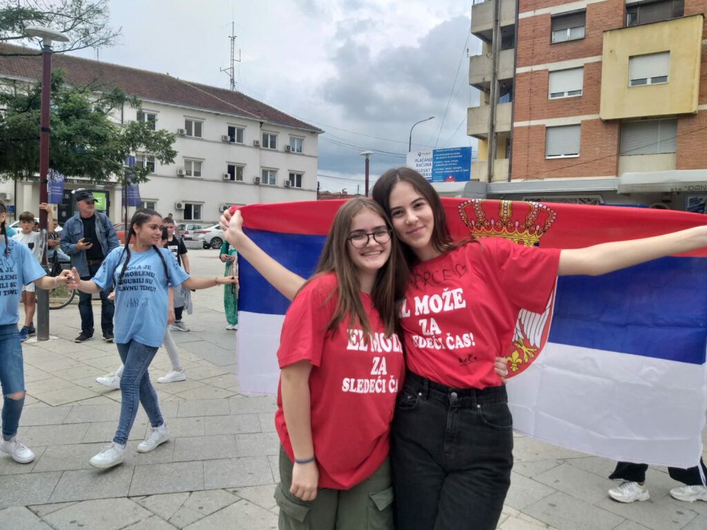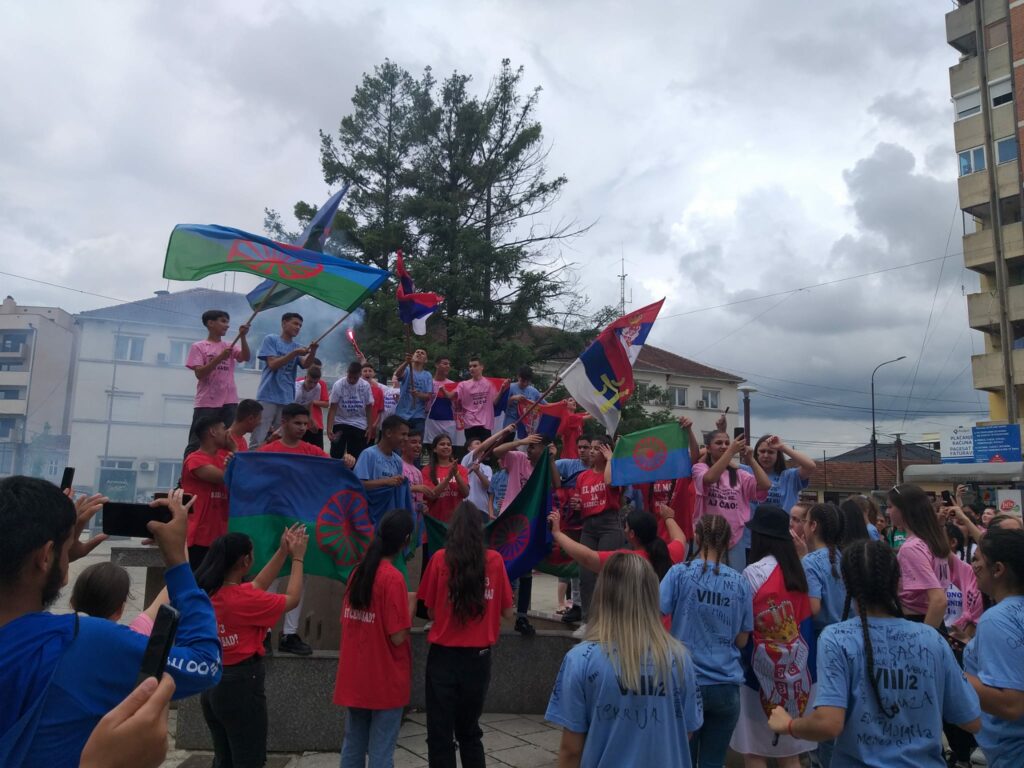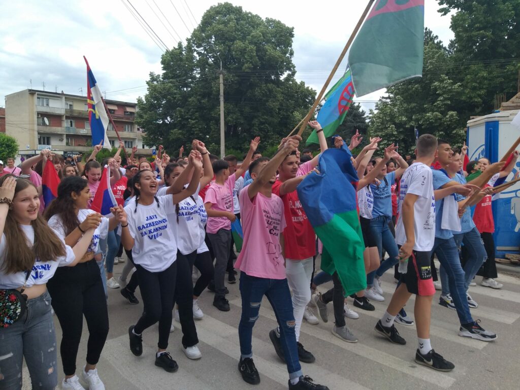 Bujanovac, 10. jun 2022. – Mali maturanti bujanovačke Osnovne škole “Branko Radičević” proslavili su danas kraj školske godine šetnjom od svoje matične škole do Karađorđevog trga u centru grada.