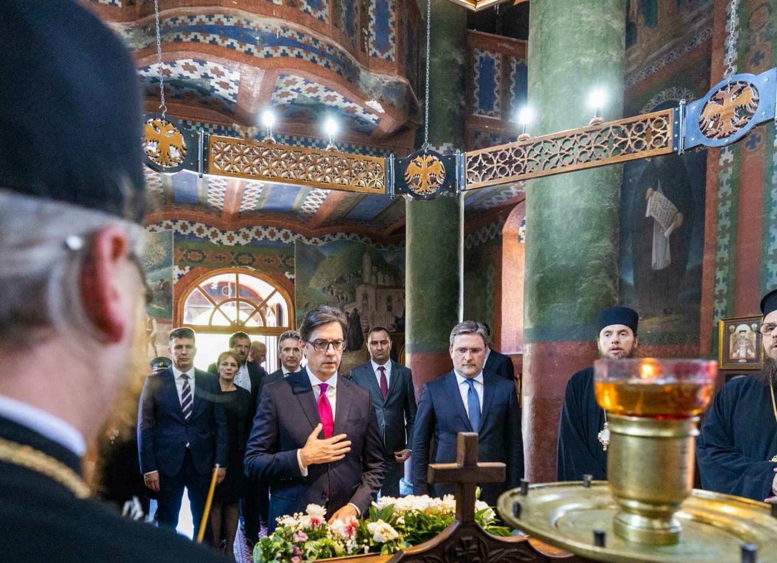 Predsednik Stevo Pendarovski položio je vence i cveće kraj spomen česme Prohoru Pčinjskom.