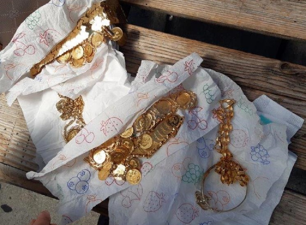 Njegova neuobičajena težina izazvala je sumnju da je u paketu nešto sakriveno, što se ubrzo ispostavilo kao tačno, jer je u nekoliko pelena pronađeno skoro pola kilograma zlatnih ogrlica i narukvica sa dukatima ”Franc Jozef”, kao i lančića i prstenja.