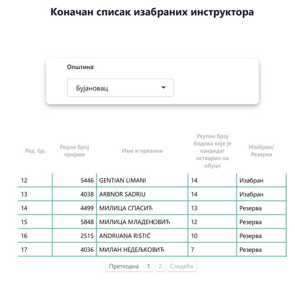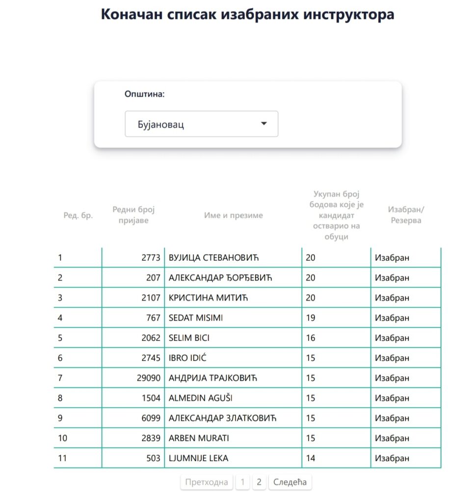 Konačan spisak instruktora na nivou cele zemlje možete videti OVDE.