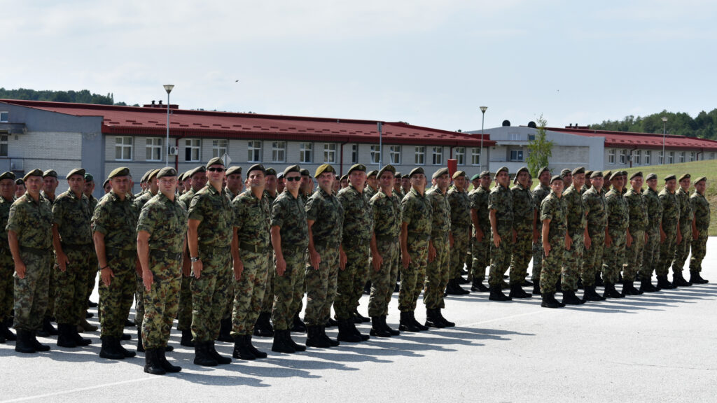 Bujanovac, 24. avgust 2022. U bazi „Jug“ kod Bujanovca u utorak je održana vojna svečanost povodom prepotčinjavanja Centra za obuku jedinica za multinacionalne operacije Centru za mirovne operacije Operativne uprave (J-3) Generalštaba Vojske Srbije.