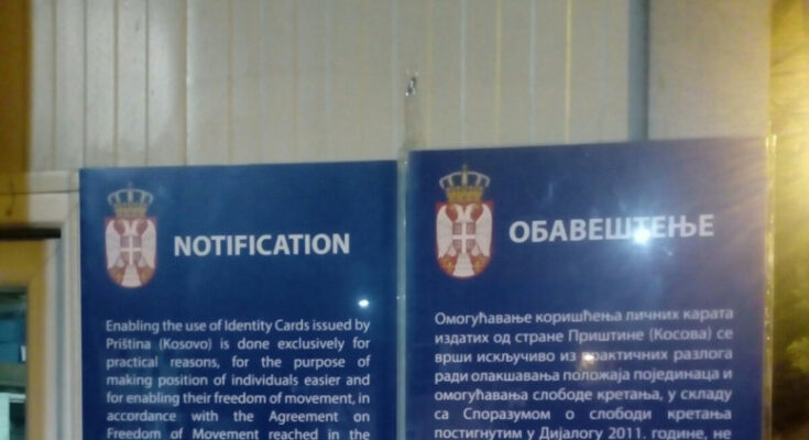Bujanovac, 31. avgust 2022. (foto Kosovo online) – Na administrativnim prelazima između Kosova i Srbije od jutros se mogu videti obaveštenja u kojima se objašnjava da se “omogućavanje korišćenja ličnih karata izdatih od strane Prištine (Kosova) vrši radi omogućavanja slobode kretanja”. U disklejmerima se navodi da se to ne može tumačiti kao priznavanje jednostrano proglašene nezavisnosti Kosova.