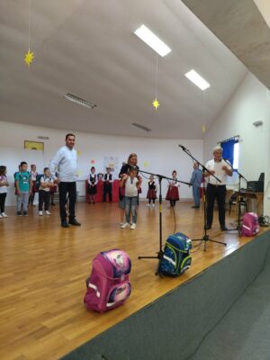 Bujanovac, 1. septembar 2022. – Danijela Nenadić, v.d. direktorka Službe Koordinacionog tela za Preševo, Bujanovac i Medveđu, uručila je danas besplatan školski pribor i rančeve đacima prvacima u školi “Bora Stanković” u Kleniku.