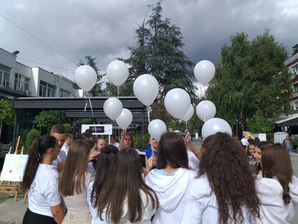 Učenici bujanovačkih srednjih škola “Sveti Sava” i “Sezai Suroi”, Dan mira obeležili su na gradskom trgu puštanjem belih balona i golubova kao simbol mira.