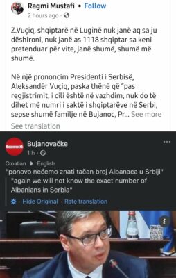 Mustafa je reagovao nakon što su Bujanovačke prenele izjavu predsednika Srbije da se ni nakon ovog popisa neće utvrditi tačan broj Albanaca koji žive u Srbiji.