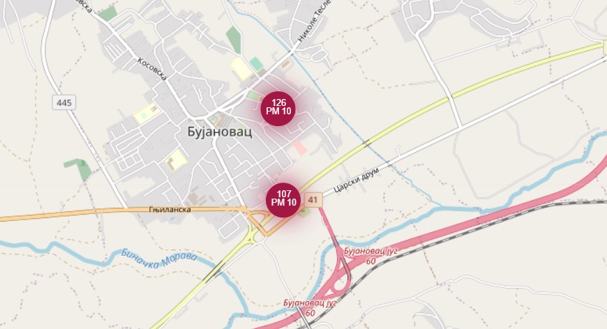 Bujanovac, 26. decembar 2022. – Sa 126 pm10 čestica u metru kubnom vazduha, Bujanovac ovog ponedeljka spada u red gradova sa najzagađenijim vazduhom u Srbiji. Ovaj rezultat zabeležen je na Klimerko uređaju postavljenom kod parka, dok onaj u Karakačkama pokazuje manje zagađenje-107.