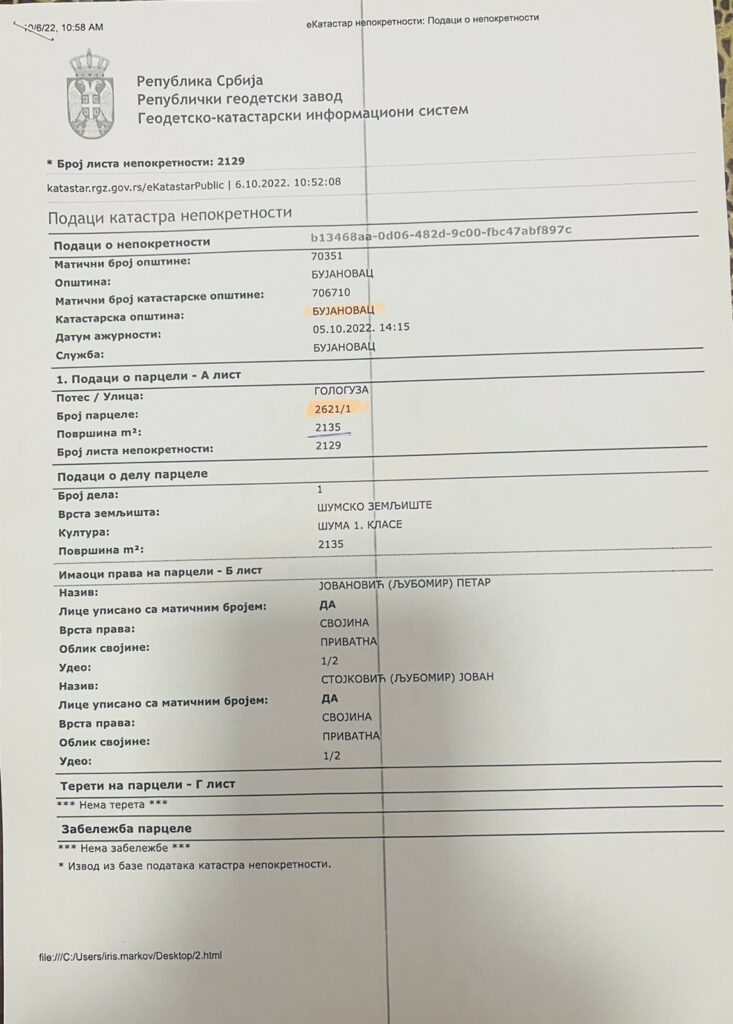 Bujanovac, 2. januar 2023. – Prodaje se ekskluzivni građevinski plac u Bujanovcu 2.135 kvadratnih metara vlasništvo 1/1.