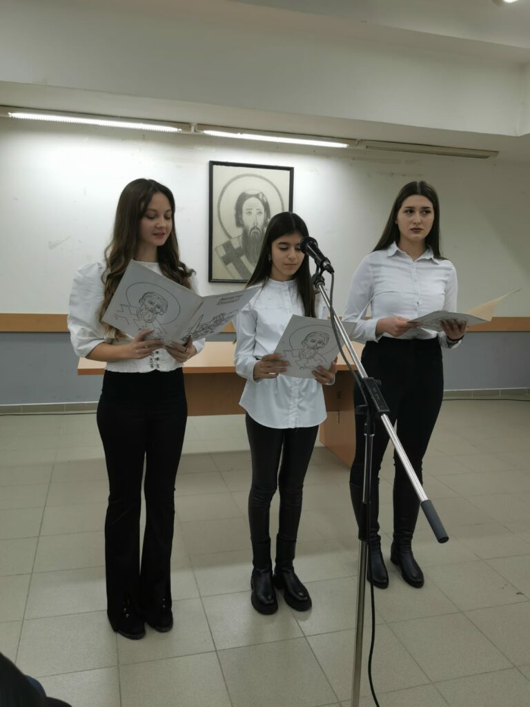 Duhovna akademija je u maloj sali Doma kulture počela himnom koju su izvele učenice SŠ “Sveti Sava”, Anastasija Janjić i Anastasija Aleksić.