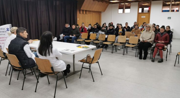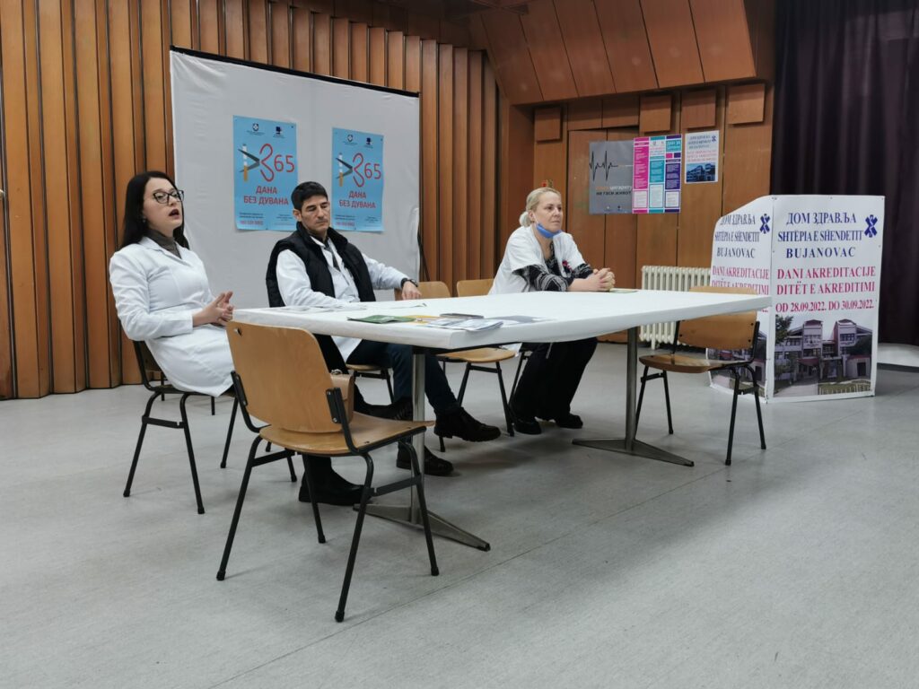 Bujanovac, 1. februar 2023. Učenici bujanovačke Srednje škole “Sveti Sava” prisustvovali su predavanju “365 dana bez duvana” u Domu zdravlja čime je u utorak obeležen Nacionalni dan bez duvanskog dima, a koliko je duvan štetan po zdravlje upozorili su ih lekari opšte prakse u školskom dispanzeru dr Nataša Popović Janković i dr Dzemailji Fejzulahi.