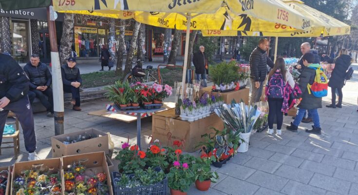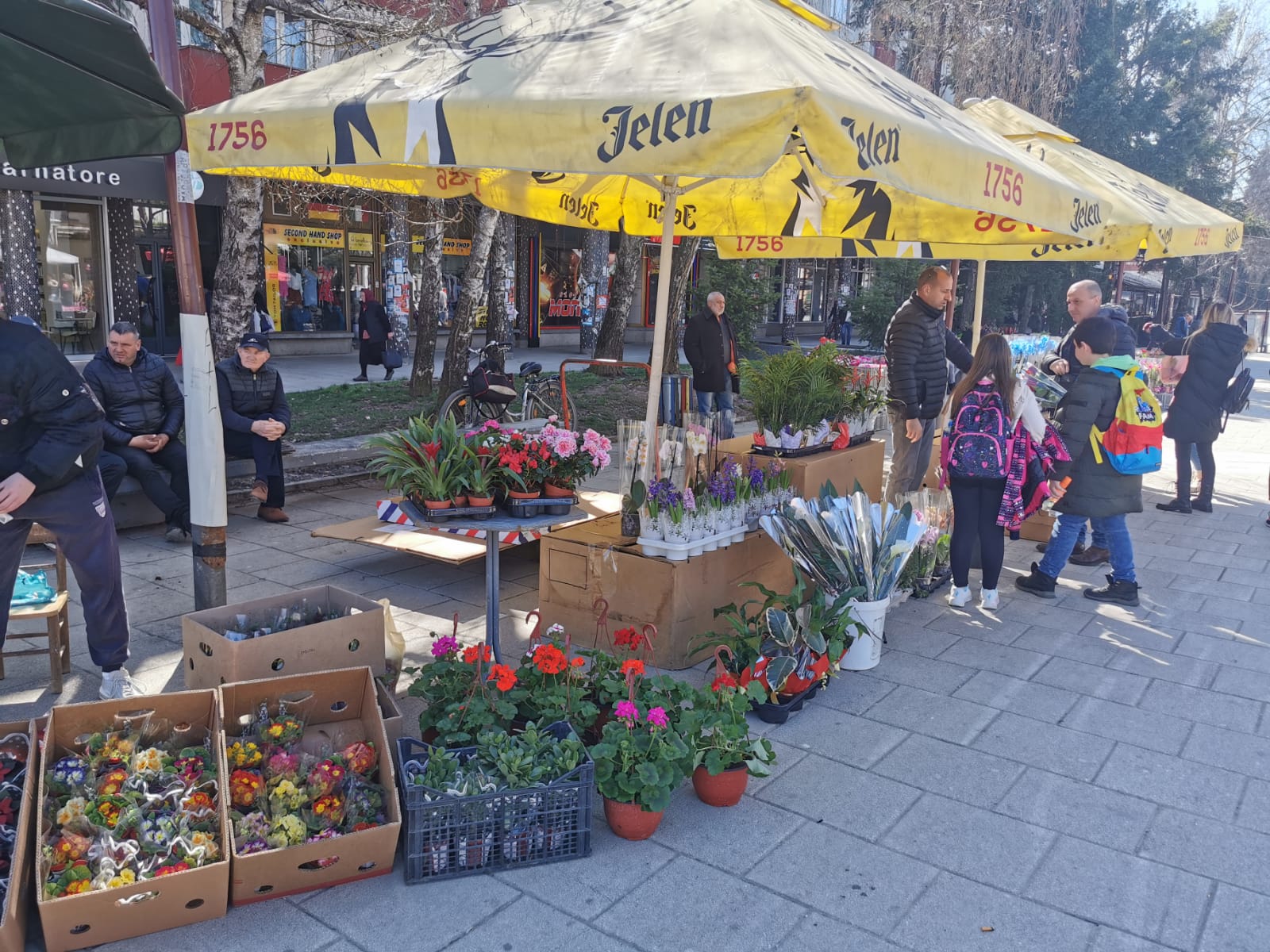 Bujanovac, 7. mart 2023. Uoči Osmog marta bujanovački trg pun je cveća,  cene su nešto više u odnosu na prošlu godinu, ali ima i za one sa plitkim i sa dubljim džepom. Prodavci kažu da i muškarci i žene jednako kupuju cveće, doduše malo manje u odnosu na ranije.
