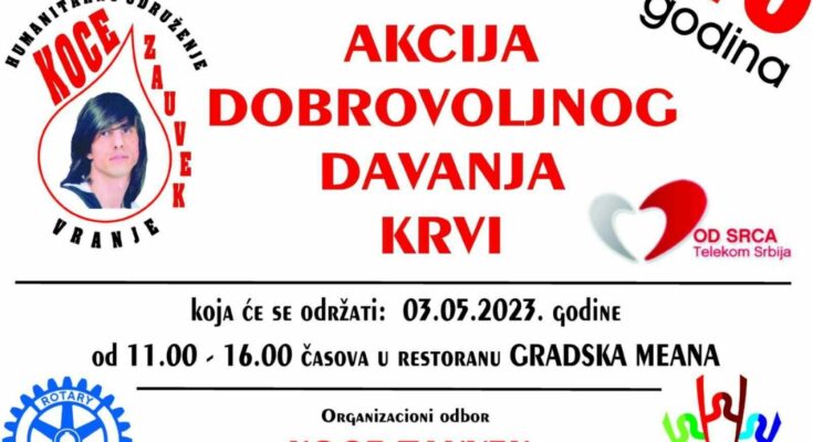 Akcija traje od 11 do 16 sati, a organizatori očekuju stotinak davalaca. Akcija se sprovodi uz nesebičnu pomoć Humanitarnog udruženja „Koce zauvek“, Rotari kluba i Telekoma.