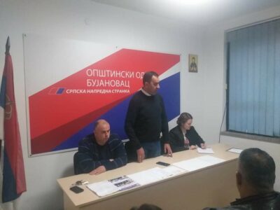 “Održan je sastanak Mesnog odbora Bujanovac na kome smo sa članovima SNS razgovarali o organizovanom odlasku na Miting 26. maja u Beogradu, članovi stranke su nas upoznali da vlada veliko interesovanje građana za odlazak na miting i tražili su da organizovano idemo za Beograd kako bi pružili podršku Predsedniku Aleksandru Vučiću. Sastanku je prisustvovao i narodni poslanik Nenad Mitrović”, objavili su bujanovački naprednjaci u petak.