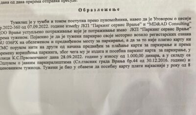 U prevodu, to znači da ako u Vranju ne platite parking, pa zaboravite da to učinite u zakonskom roku, vas neće tužiti Parking servis već privatna firma Branislava Stojkovića, Vranjanca koji je sada potpredsednik odbora JS u Nišu.