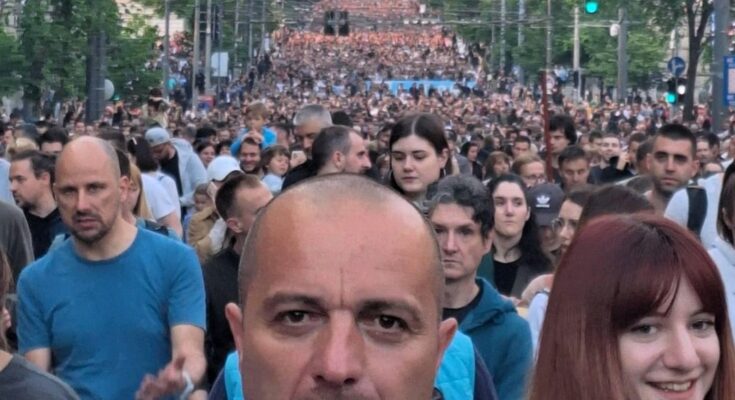 Bujanovac, 20. maj 2023. (foto: Arsić na protestu Srbija protiv nasilja) – Šef bujanovačkog odbora Narodne stranke Saša Arsić kaže da su sve srpske stranke u Bujanovcu postigle dogovor o jedinstvu na predstojećim izborima za mesne zajednice (4. jun) zbog albanske opštinske vlasti koja za sredine u kojima žive Srbi izdvaja manje novca nego što bi trebalo i koliko im iz opštinskog budžeta pripada. On je naglasio da ovaj dogovor ne znači da je Narodna stranka u koaliciji sa naprednjacima, SPS, ili bilo kojom vladajućom strankom.