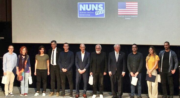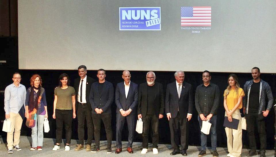 Nujanovac, Beograd, 24. maj 2023. – Nezavisno udruženje novinara Srbije (NUNS), uz podršku Ambasade SAD, dodelilo je 18. po redu godišnju Nagradu za istraživačko novinarstvo “Dejan Anastasijević“, a dobitnici su novinari Nemanja Rujević, Maja Nikolić i Radmilo Marković.