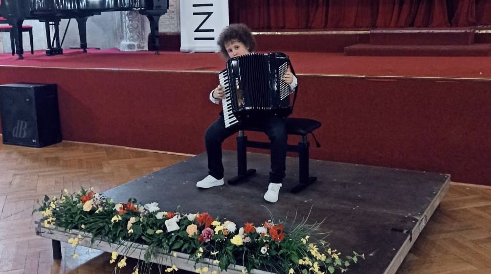 Bujanovac, 25. maj 2023. – Aleksa Zlatković iz Bujanovca, učenik prvog razreda harmonike bujanovačke Muzičke škole, osvojio je prvo mesto na 46. Međunarodnom takmičenju harmonikaša u Puli.