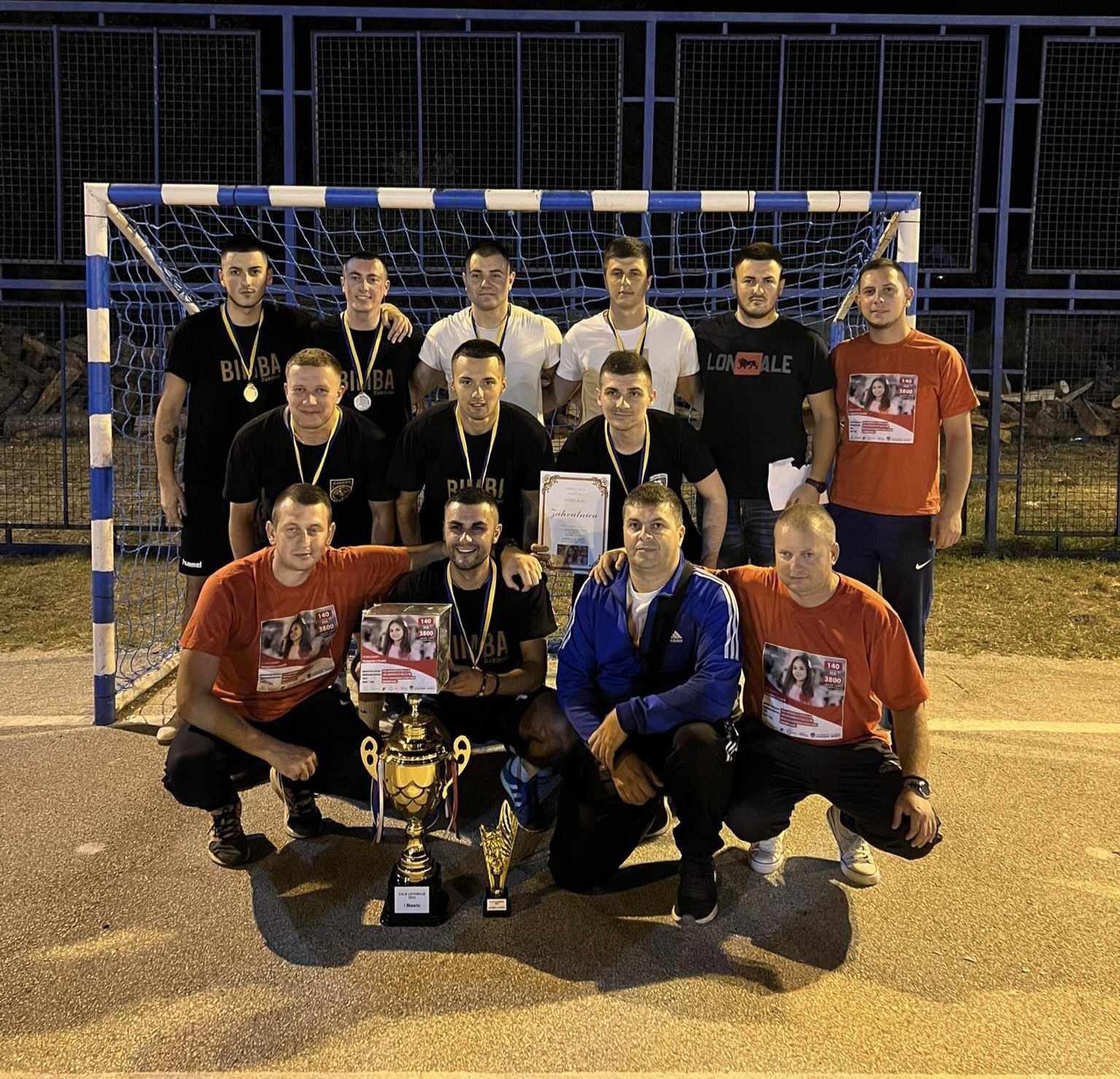 Bujanovac, 26. avgust 2023. Memorijalni turnir “Janjić Saša Cale” u malom fudbalu u selu Levosoje osvojila je ekipa Kafe Perla iz Bujanovca, koja je u petak uveče u finalu turnira na penale pobedila ekipu bujanovačke Veterinarske stanice.