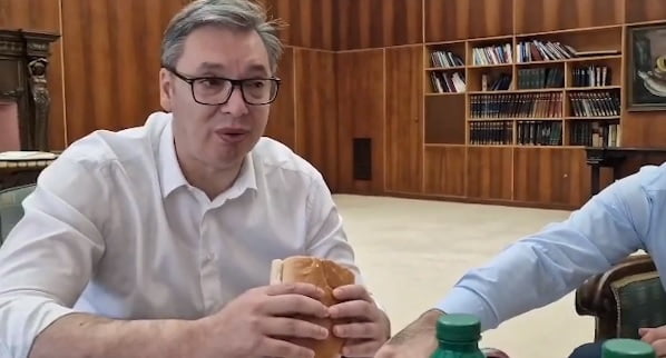 Na kraju snimka su predsednik Srbije i ministri napravili sendvič sa majonezom i parizerom.
