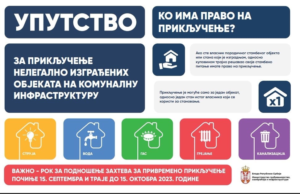Komunalna preduzeća, koja će priključiti objekate na svoju mrežu, nemaju pravo da traže dokaz o imovini ili statusu, jedino ih se tiču tehnički uslovi za priključenje i oni su u obavezi da radove obave po hitnom postupku, a ugovore će potpisavati po cenovniku koji važi i za sve ostale građane.
