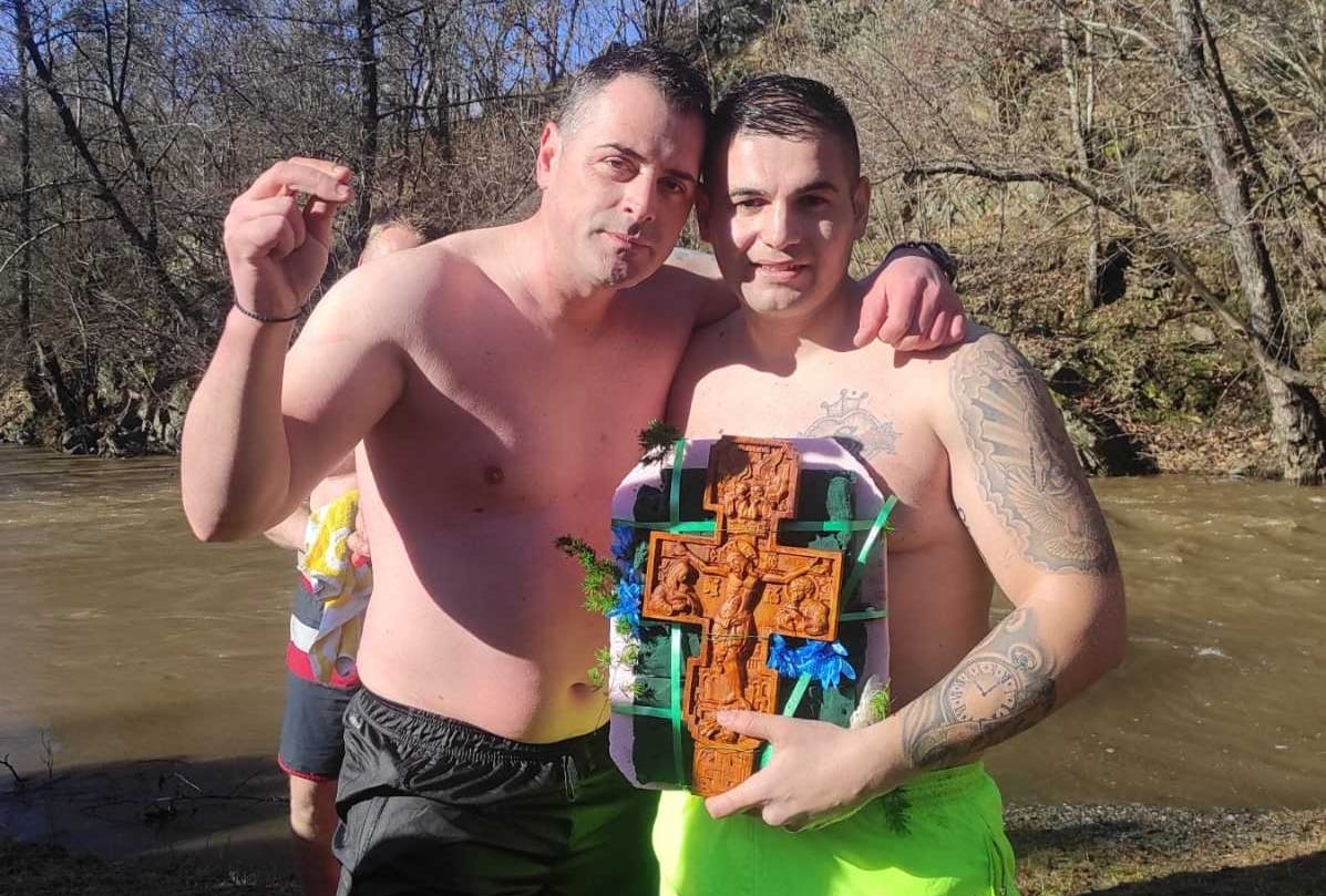 Bujanovac, 19. januar 2024.- Pobednik današnjeg plivanja za časni krst u reci Pčinji je Aleksandar Stanojković, vojnik u Centru za obuku jedinica za učešće u multinacionalnim operacijama. On je među stotinak plivača prvi doplivao do krsta.