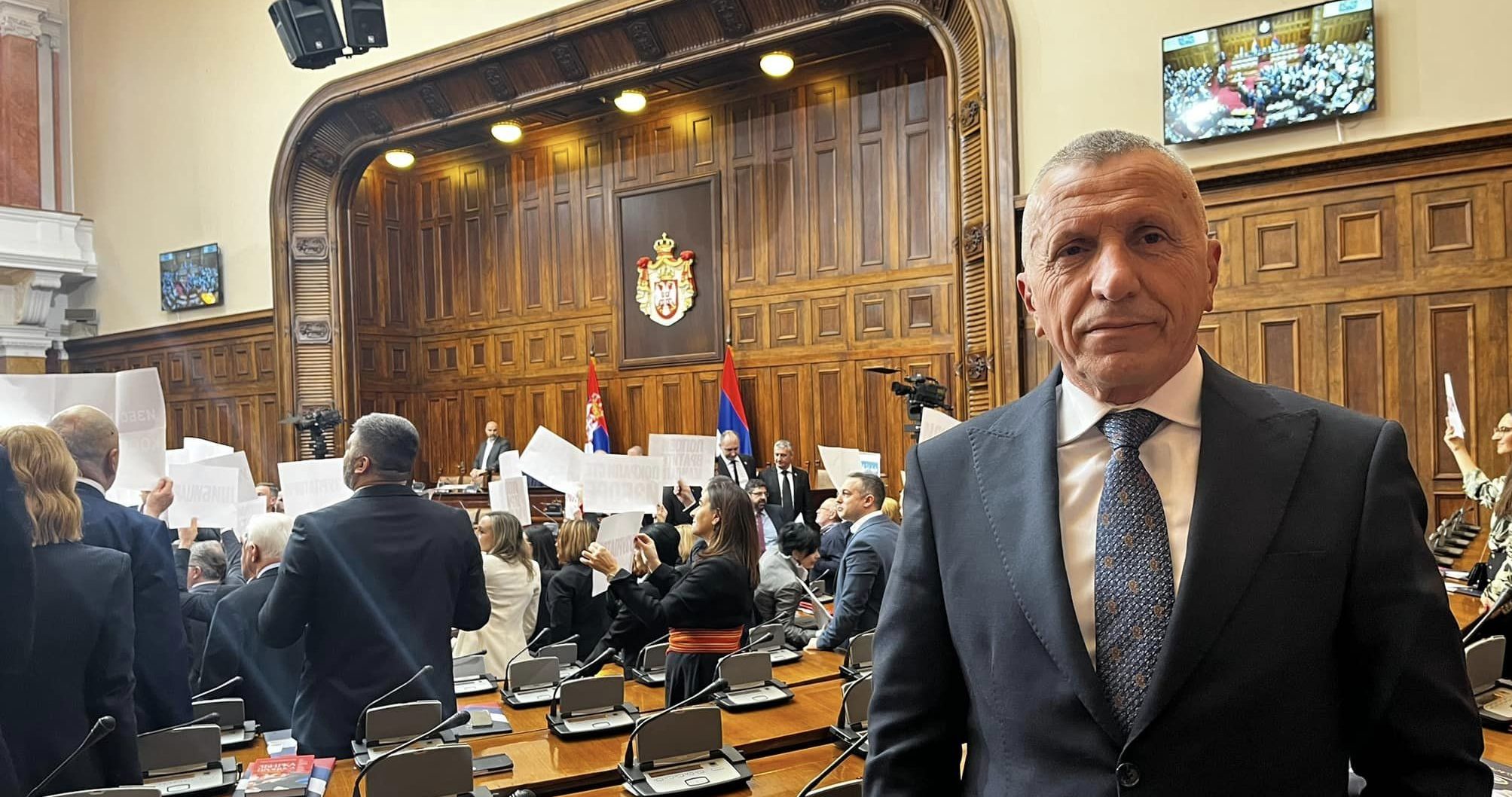 Bujanovac, 6. februar 2024. Narodni poslanik iz Bujanovca Šaip Kamberi današnju sednicu Skupštine Srbije nazvao je teatrom apsurda. Sednica je prekinuta pre verifikacije mandata, a Kamberi kaže da se vlast i opozicija međusobno optužuju ko je “Kurtijev saradnik”.