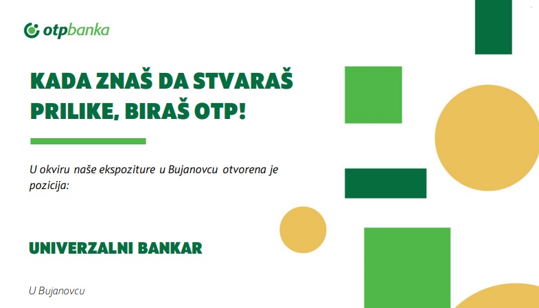 Bujanovac, 15. mart 2024. – OTP Banka u Bujanovcu zapošljava!