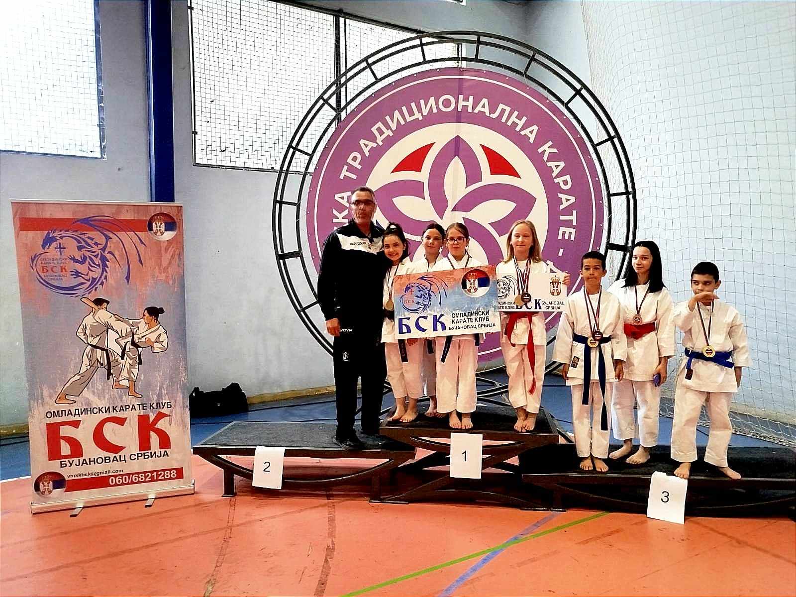 Bujanovac, 22. april 2024.- Karatisti BKS doneli su iz Kragujevca ukupno 15 medalja na Karate kupu HIDETAKA NIŠIJAMA STKF koji je održan u nedelju.