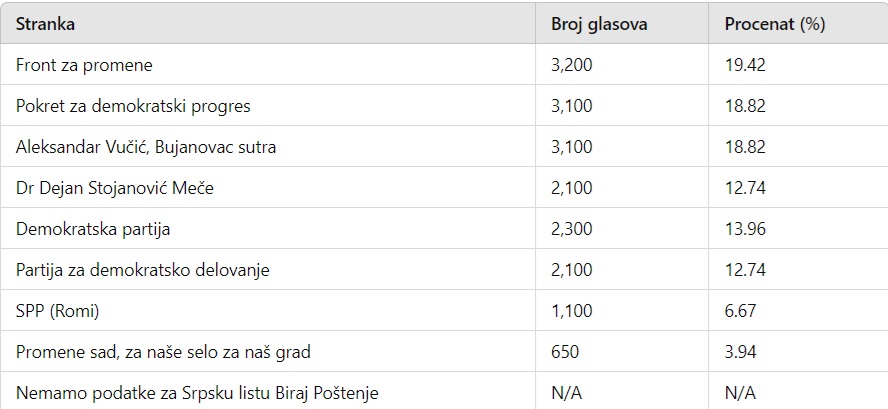 Poredeći sa izborima 2020. godine, najviše glasova izgubila je koalicija oko SNS, koja je na ovim izborima išla sa Stojančom Arsićem. On i SNS su na prošlim izborima zajedno dobili 6.700 glasova, a sada 3.600 manje.