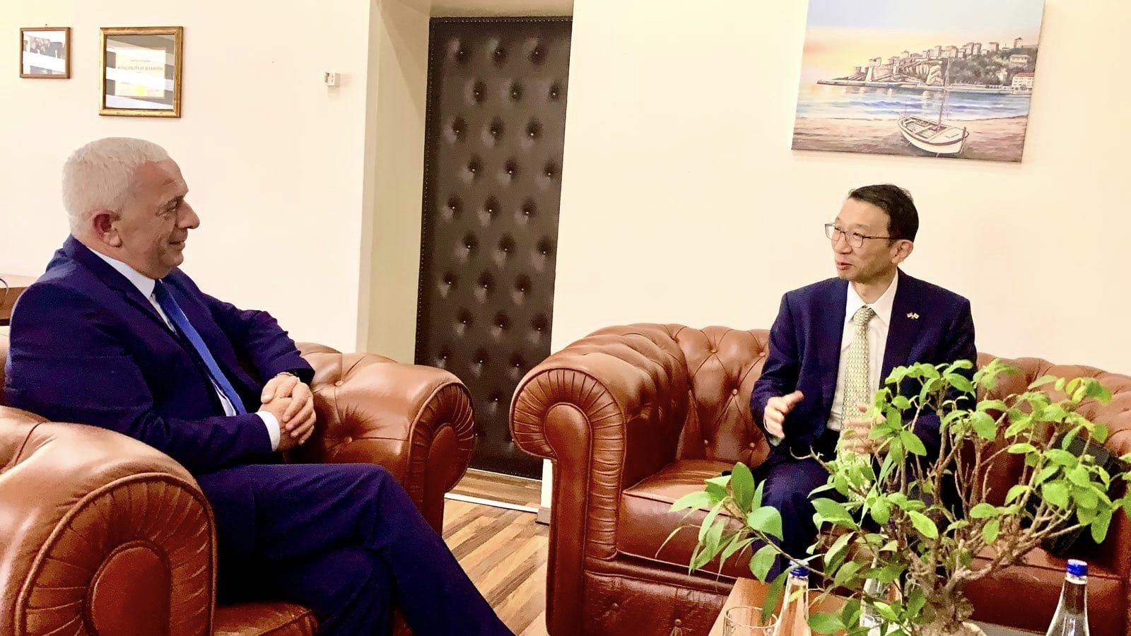 Bujanovac, 12. jun 2024. Ambasador Japana u Beogradu Akira Imamura posetio je u utorak Bujanovac i sa predsednikom opštine Nagipom Arifijem razgovarao o bezbednosnoj, političkoj i ekonomskoj situaciji.