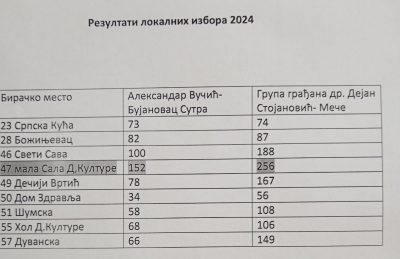Ako se gledaju rezultati po selima grupa građana dr Stojanovića pobedila je samo u Srpskoj Kući i to za jedan glas (74:73) i nešto većom razilkom u Božinjevcu (87:82).